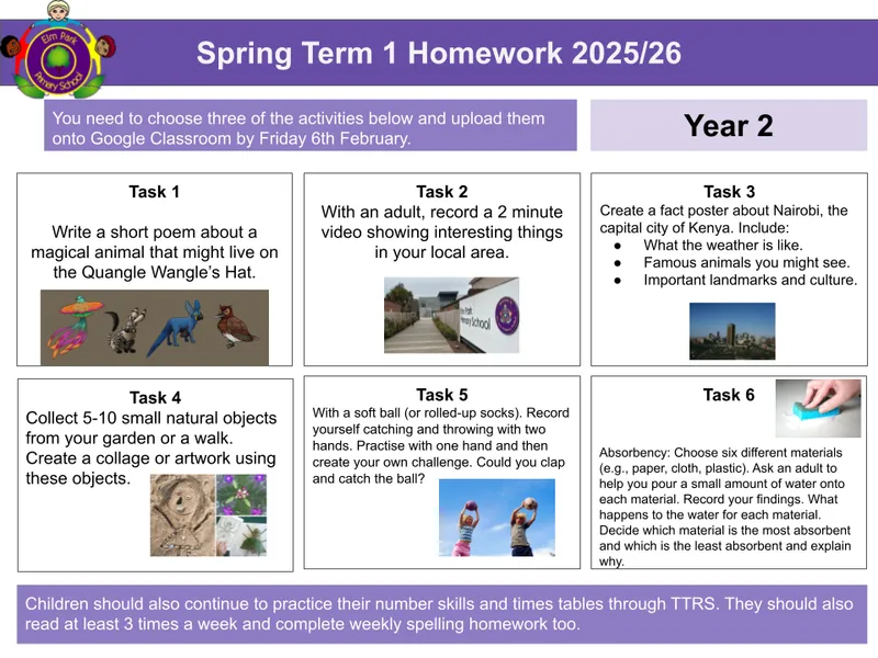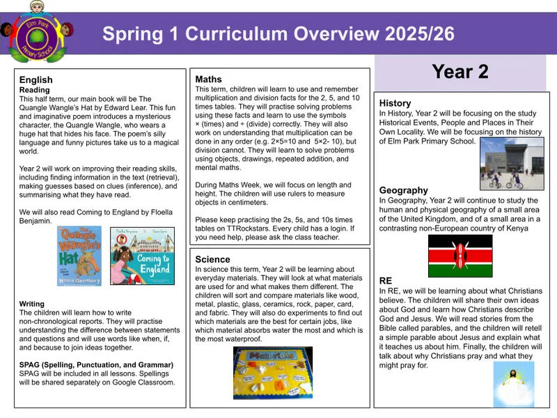 This term, we will explore engaging topics across the curriculum, practise our key skills in reading, writing and maths, and enjoy plenty of creative and hands-on activities. We’ll also be focusing on working as a team, showing kindness and respect, and celebrating each other’s achievements.
